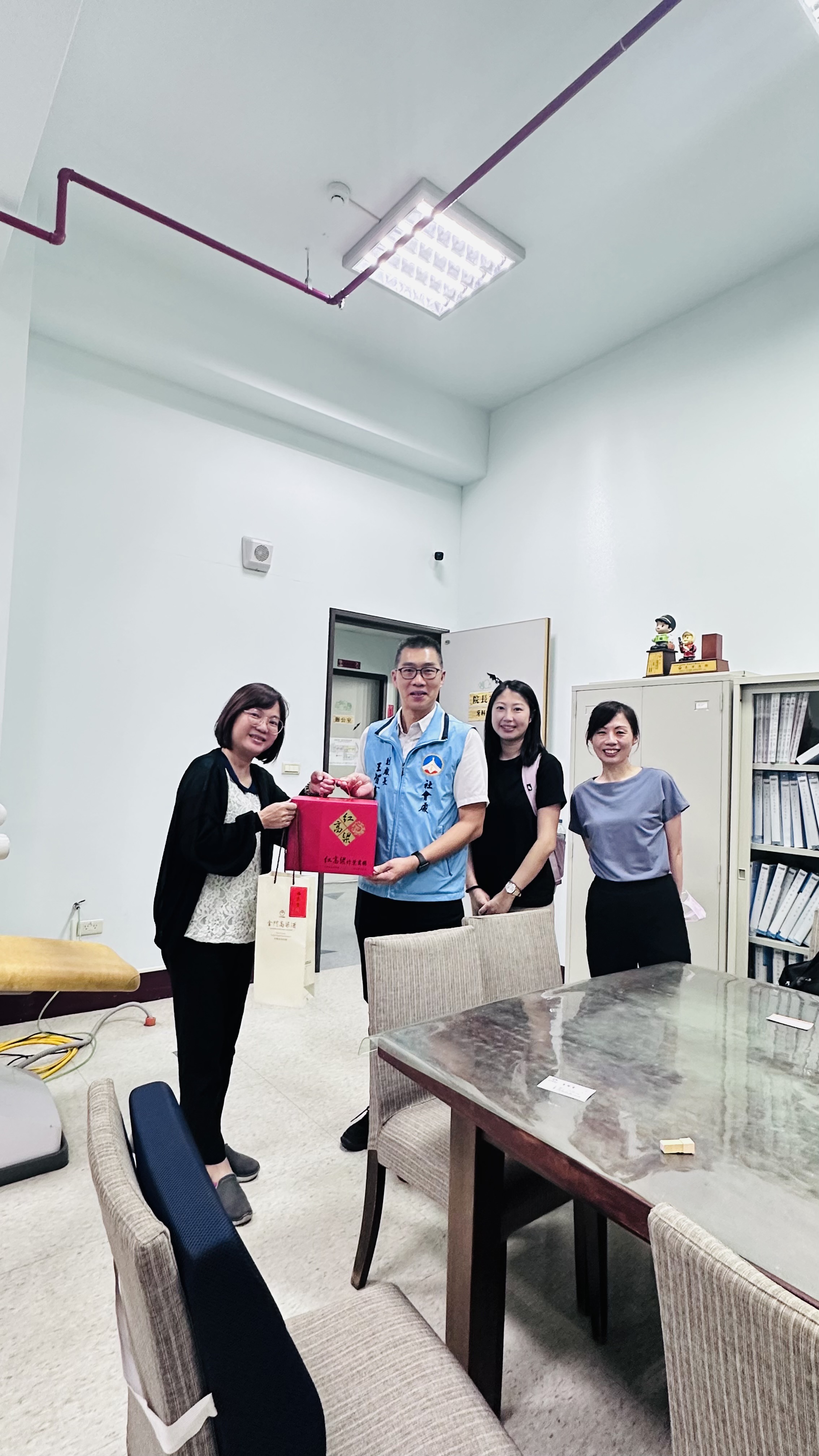 歡迎金門縣政府社會處王副處長率領同仁蒞臨,致贈秋節禮盒予喜願、慰問金予設籍金門之服務對象。